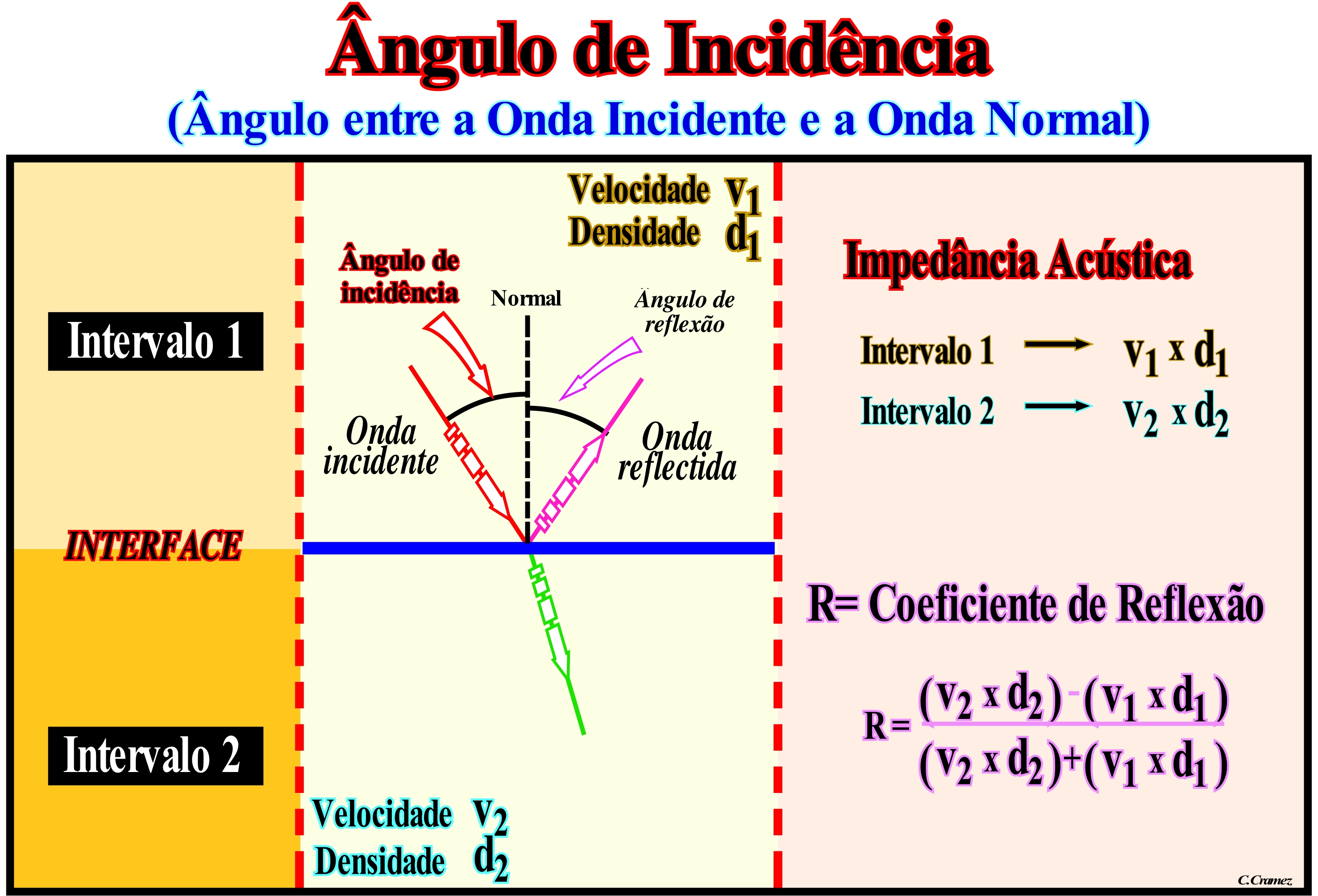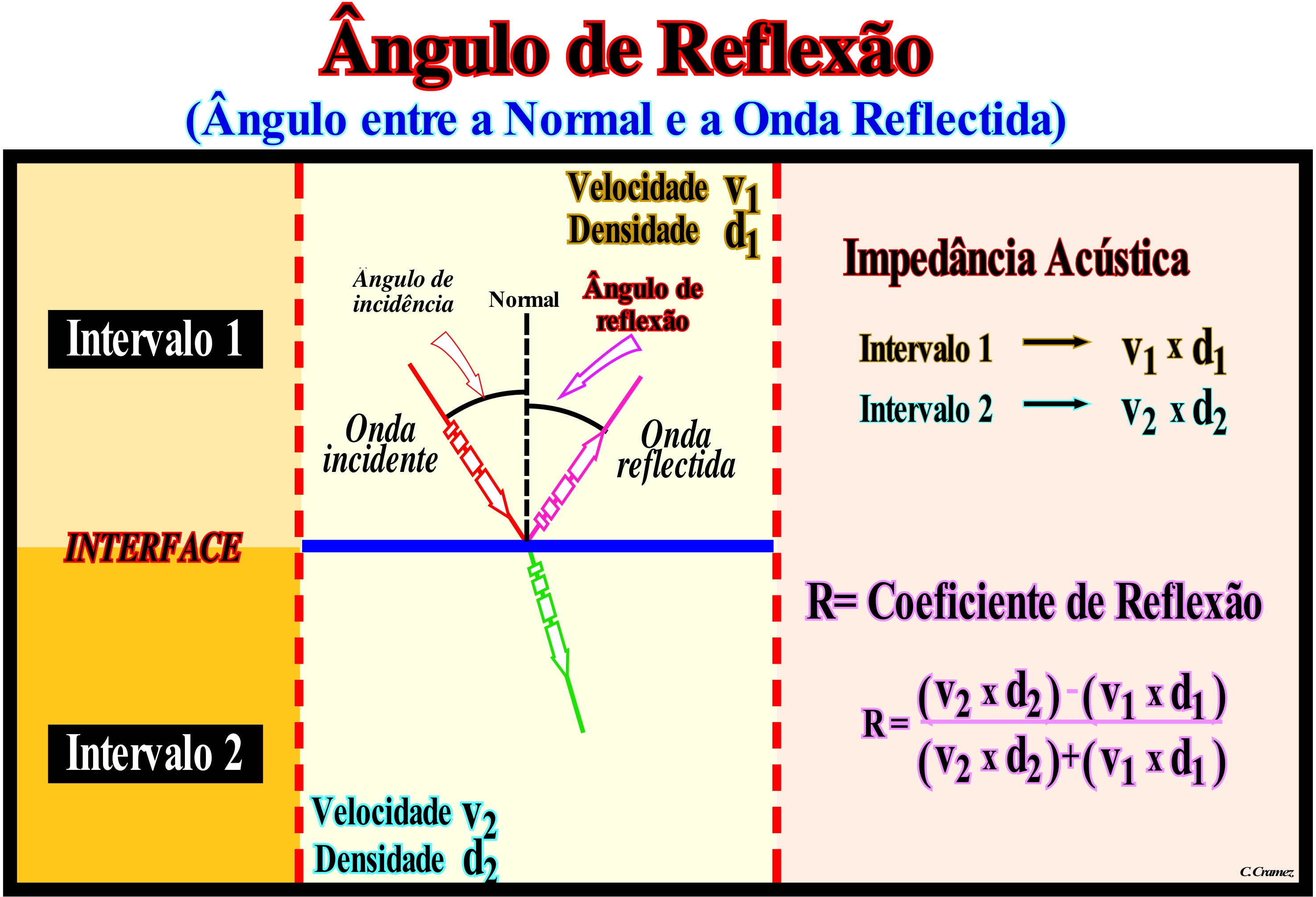 Supondo dois intervalos sedimentares consecutivos (um sobre o outro) com velocidades v1 e v2 e densidades d1 e d2 diferentes, isto é, com impedâncias acústicas (vi x di) diferentes, o coeficiente de reflexão da interface, definida por esses intervalos, é dado pelo quociente entre a diferença e a soma das impedâncias acústicas dos intervalos. Teoricamente, o coeficiente de reflexão é o responsável da reflexão sísmica entre dois intervalos sedimentares. Quando a impedância do intervalo superior é maior do que a impedância do intervalo inferior, a reflexão associada é positiva (segundo a convenção de polaridade proposta pela Sociedade Europeia de Geofísica). Ela é representada, numa linha sísmica, por uma deflexão (colorida a preto) para a direita da linha de base do traço sísmico. Quando a impedância acústica do intervalo superior é mais pequena do que a do intervalo inferior, a reflexão é considerada negativa. Contudo, todos os geocientistas constataram, muitas vezes, a presença de magnificas reflexões sísmicas entre intervalos com a impedâncias acústicas iguais. Este facto, parece ser, regularmente, observado quando as diagrafias eléctricas dos intervalos que caracterizam os intervalos que sedimentares que definem a interface não mostram variações importantes, excepto na diagrafia da inclinação. Em outros termos, muitas vezes, podem observar-se reflexões sísmicas induzidas por um comportamento estrutural diferente das superfícies cronostratigráficas, que compõem os intervalos que definem uma interface, quer ele seja associado a uma discordância reforçada pela tectónica (discordância angular) ou uma desarmonia tectónica criada pelo escoamento, parcial ou total, de um intervalo móvel (sal ou argila). Ao longo de uma discordância reforçada pela tectónica (discordância angular), o coeficiente de reflexão varia lateralmente. Teoricamente, não pode haver uma única reflexão sísmica contínua associada a uma tal discordância, mas várias reflexões (função do contraste de impedância). Isto quer dizer, que o interprete é obrigado a saltar das cristas para as vagas dos traços, ou vice versa, para ter uma ideia da geometria da discordância.