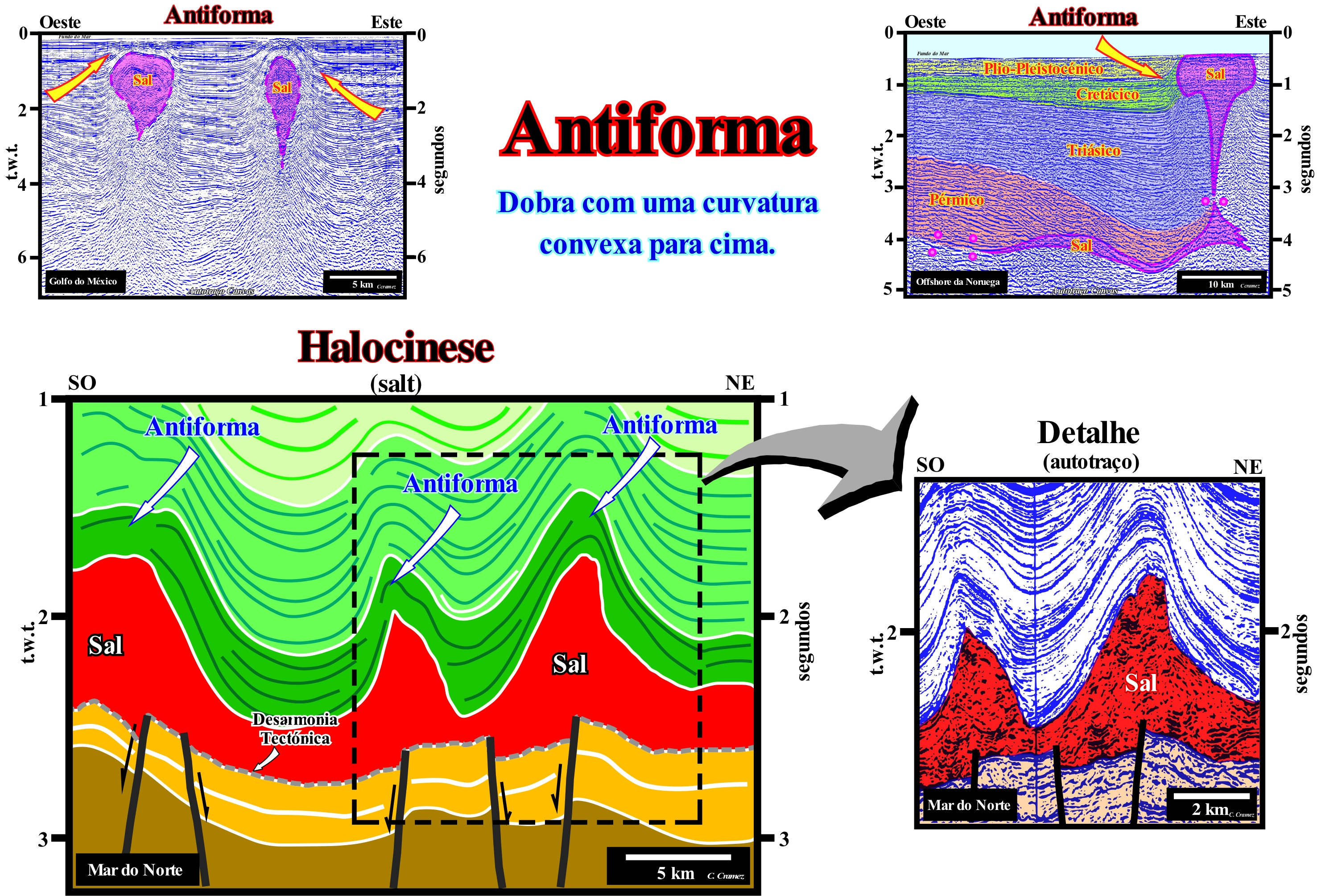 Quando a escala vertical e horizontal de um documento são diferentes. Quando um anticlinal, perfeitamente concêntrico e isópaco (espessura constante) no campo (escala 1:1), é representado num corte geológico, com uma escala vertical 5x maior do que a escala horizontal, ele aparecerá, substancialmente, alongado e com uma espessura no ápice maior do que nos flancos. A sua imagem não é mais isópaca e um geocientista ingénuo (na acessão da filosofia das ciências, isto é, um geocientista inductivista) pode mesmo pensar que o ápice representa a parte mais subsidente da bacia sedimentar. Como nas linhas sísmicas convencionais, a escala horizontal é métrica e a escala vertical em tempo (segundos), pode dizer-se que elas são perfis anamorfizados, o que tem implicações importantes nas tentativas de interpretação geológica.