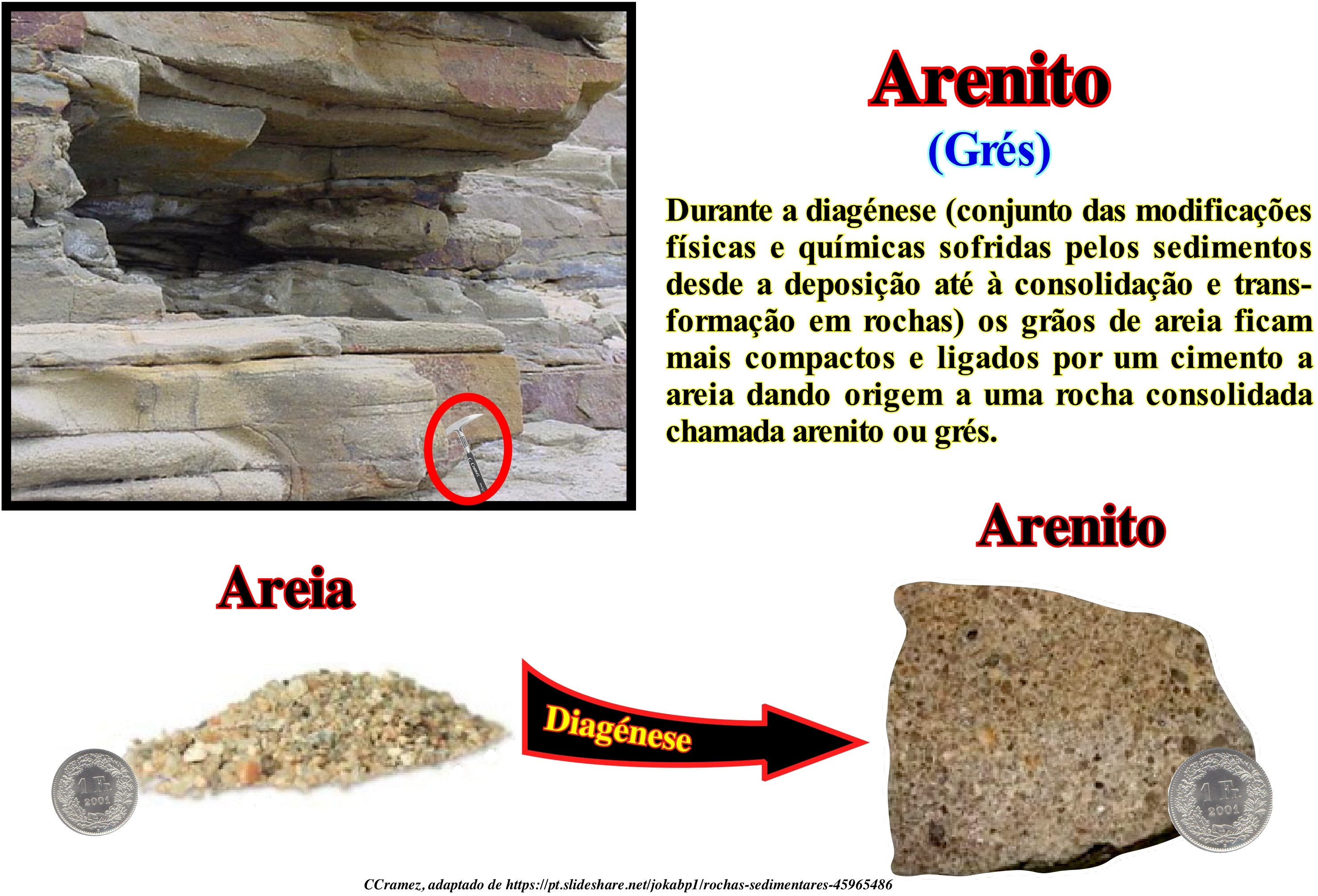 (*) Conjunto de processos geológicos (desidratação, compactação, cimentação, recristalizações, etc.) que convertem os sedimentos ou seja, as partículas ou detritos rochosos, resultantes da erosão, da precipitação química a partir de oceanos, vales ou rios ou biológica, depositados na superfície da Terra em camadas de partículas soltas quando diminui a energia do fluid (água, gelo ou vento) o que o transporta, em rochas consolidadas.