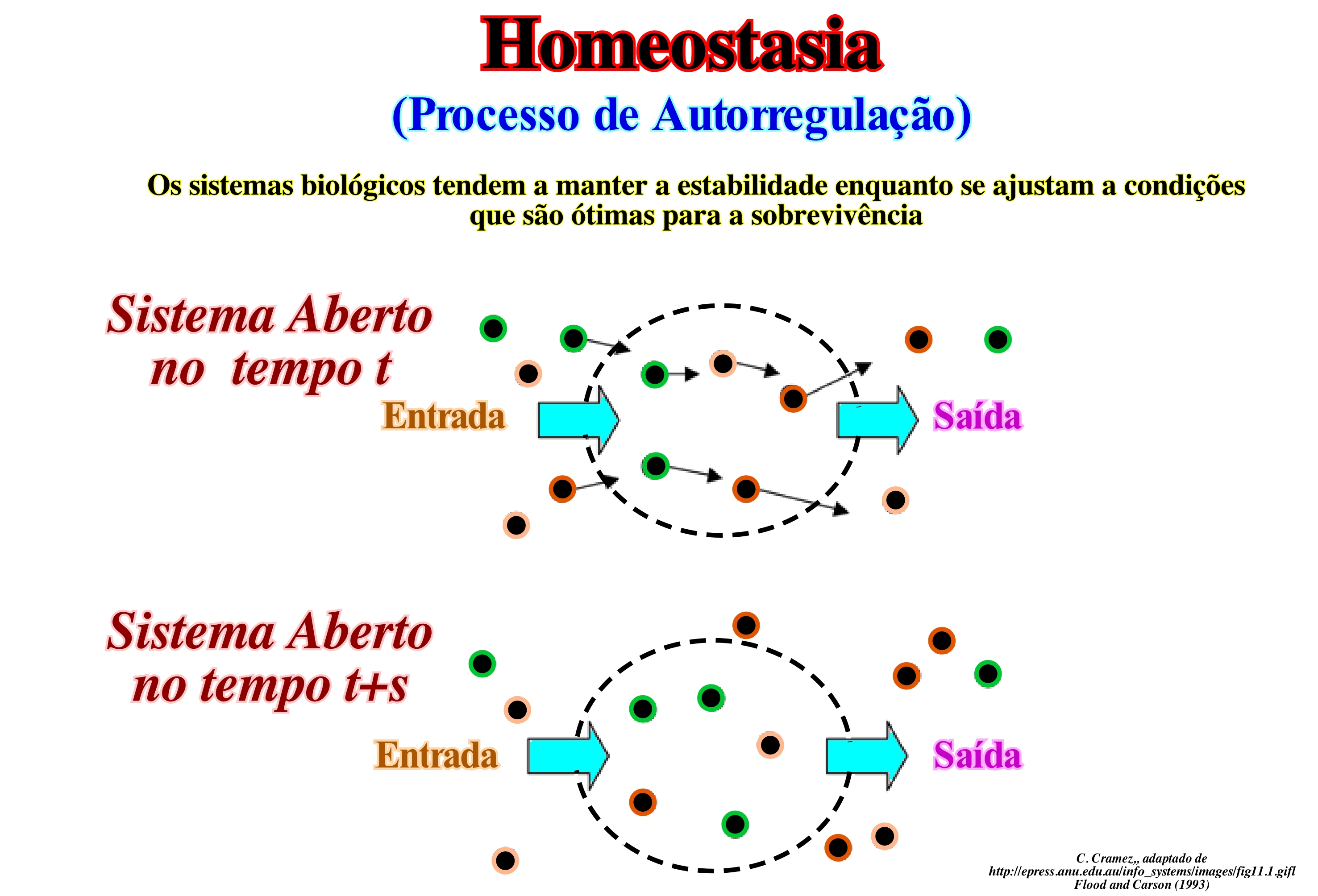 Homeostasia não é apenas uma das propriedades mais importantes de qualquer organismo vivo, mas também é aplicável a organizações humanas ou de trabalho tratados como sistemas abertos. Uma organização necessita de recrutar novos funcionários para substituir aqueles que se aposentam, mas também tem necessidade de matérias primas, energia e informações para uso dos seus processos e operações afim de manter um estado estável. Uma organização que aparece, externamente, estática e imutável, para os observadores externos, está, internamente, num estado de fluxos de equilíbrio dinâmico. Outro aspecto importante de um sistema aberto num estado de equilíbrio dinâmico é que ele depende de mecanismos de retroacção para permanecer nesse estado. Na hierarquia de Boulding, que classifica os sistemas de acordo com sua complexidade, não é surpreendente descobrir que propriedades exibidas pelos sistemas inferiores da hierarquia também são encontrados nos mais elevados, porque estes são construídos sobre os primeiros. Um sistema que é classificado como um sistema aberto, que possui todas as qualidades que pertencem ao sistema ao nível cibernético (autorregulação). O comportamento dos sistemas abertos é, em grande medida, determinado pelos mecanismos de retroacção neles presente. Existem dois tipos de retroacção que operam na maioria dos sistemas, ou seja, uma retroacção negativa e positiva. A primeira reduz ou elimina o desvio do sistema a partir de uma determinada norma. Um mecanismo de retroacção negativo tende a neutralizar o efeito de perturbação do ambiente para que o sistema possa manter o seu rumo normal de funcionamento. Por outro lado, ele amplifica a retroacção positiva ou acentua a mudança, o que leva a uma divergência contínua a partir do estado inicial. A retroacção positiva colabora com a retroacção negativa em sistemas vivos (por exemplo, organismos e organizações, também, ambos os tipos de retroacção estão presentes durante o crescimento, embora o resultado seja positivo). No entanto, a operação de retroacção positiva por si só pode, eventualmente, resultar num sistema de desintegração ou colapso. Uma retroacção negativa tem um papel fundamental na capacidade do sistema para atingir um estado de equilíbrio, ou homeostasia.