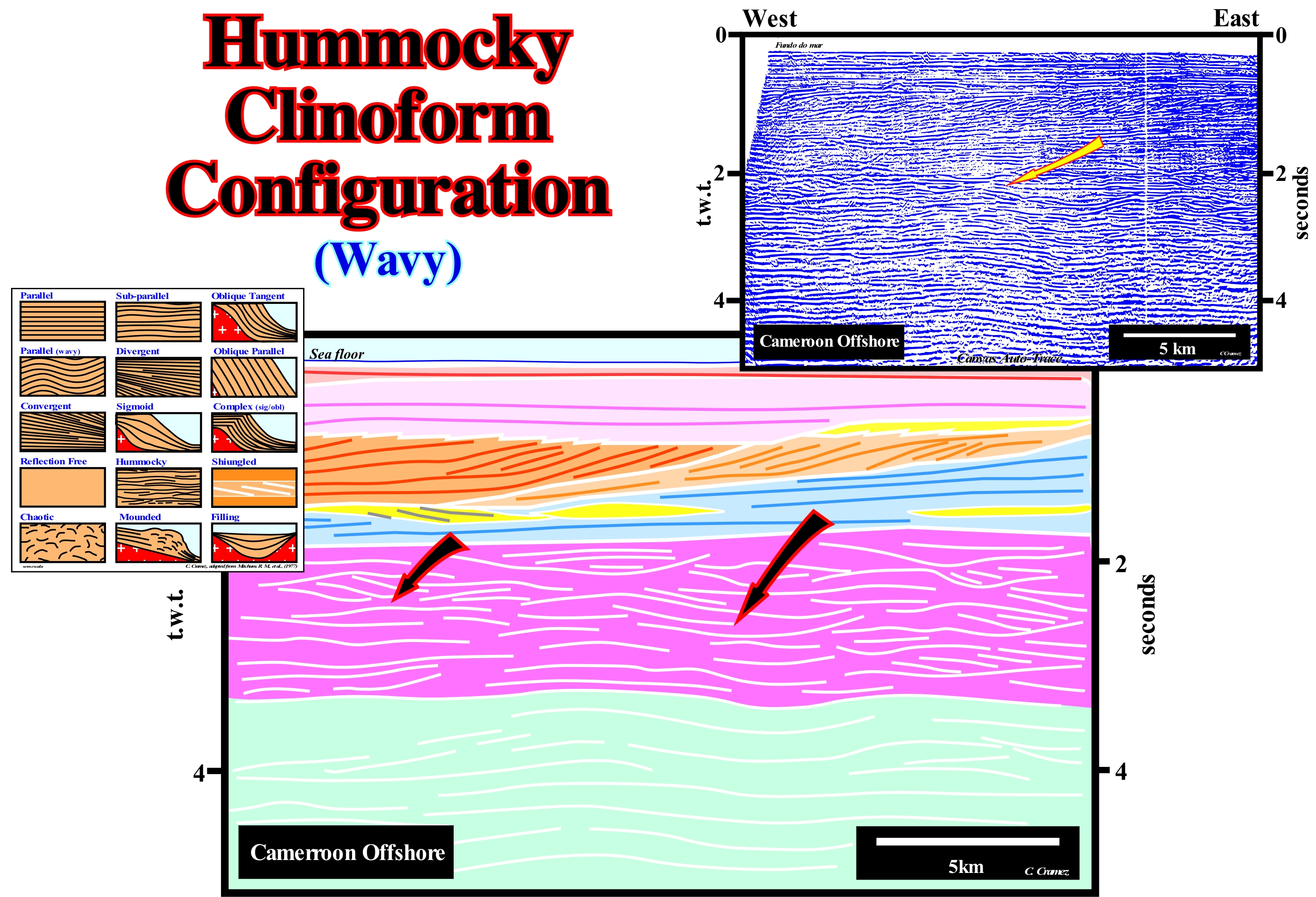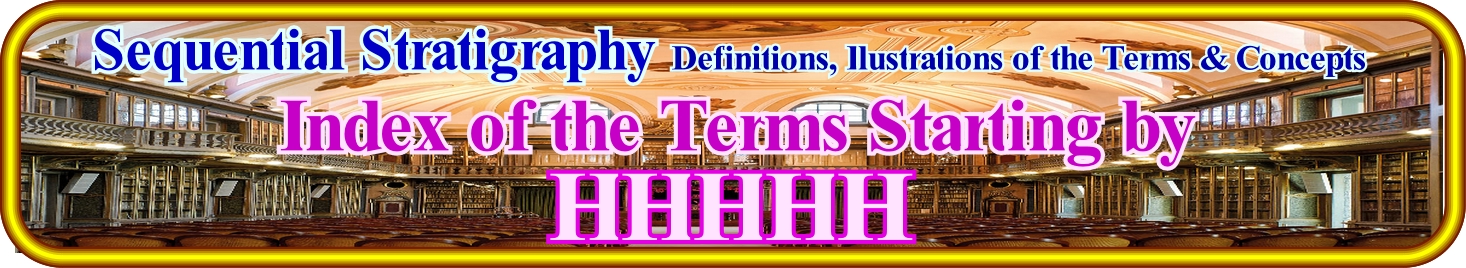 Homotaxy was, initially, proposed by Huxley (1982) to avoid the fallacy of confusing a taxonomic similarity* with synchronism. Today, homotaxy is often defined as the taxonomic similarity between stratigraphic or fossil sequences in separate regions (Bates & Jackson, 1987), or the fact that of strata characterized by fossils occupy similar positions in different vertical sequences without, however, necessarily the same age. The term homotaxy may also be used to express the fact that non-contemporary strata or layers (often too far apart from each other) may contain the same fossils. To demonstrate that a succession of fauna, flora or taxa (plural of taxon) can be confirmed from one geological section to another, from one sedimentary basin to another or from one continent to another, is not easy but is what many geoscientists call homotaxy. Observing the same fossils in two outcrops of different sedimentary basins does not in any way show that these outcrops are synchronous. In reality, that is, the great problem of index fossils (with a large spatial distribution and occurring for a short time), and the main question is how to proceed from ordered geological events to dated geological events. This problem constitutes the great impasse of biostratigraphy. The paleobiological and stratigraphic data characteristic of a given geological event do not allow to establish its synchronism. On this subject one can not forget that: (i) Fossils signify a succession of irreversible events and (ii) Biostratigraphic correlations depend on the evolutionary emergence of a species, from its ancestor, on its survival and geographic expansion. The principle of correlations assumes that biological communities, in different places, are synchronized or that biological signals are transmitted, instantaneously, or both, which is not necessarily true. Scott, GH (1985) considered the main problem in biostratigraphy is the justification of the use of fossils to identify isochron horizons and proposed a first solution. Geoscientists establish sequences of fossil events, but there is no theoretical justification to consider that the same stratigraphic position (homotaxy) corresponds to the same deposition time. Scott proposed a first solution using homotaxy as a test of diachronism, i.e., events that do not maintain an invariant stratigraphic order are considered to be diachronic. Events that resist this test are not considered isochronous, but the potential diachronism of their individual distributions is, inversely, related to their stratigraphic spacing. The closer the homotaxial events in the stratigraphic space, the less they are separated in time. Thus, one of the main objectives of biostratigraphic research should be to make more stringent homotaxy tests by increasing the density of events. The scheme illustrated in this figure, which is a good example of an allostratigraphic interpretation** of the alluvial and lacustrine deposits of a rift-type basin, whether the basin is Cretaceous or Neogene, shows that the concept of homotaxy can also be applied to lithological correlations, to designate the fact that strata characterized by geometric relationships and similar positions in different vertical sequences regardless of their age. In fact, in this geological section, the alluvial and lacustrine deposits can be included in a single geological formation or they can be separated, laterally, into distinct geological formations on the basis of the contrasts of lithology (pebble, clay). The lithology changes are abrupt and accentuated, both vertically and laterally. Homotaxy does not imply, necessarily, a timing of deposits. Alluvial and lacustrine deposits, for example, may be included in a single geological formation or be, laterally, separated into distinct formations on the basis of the geometric relationships or the basis of their fossils. However, four allostratigraphic units, each including two or three facies, can be defined on the basis of laterally mapped discontinuities. As can be seen in the Canvas auto-trace of a detail of an Indus regional seismic line, it is evident that the similarity and diachronism of the submarine slope fans (gull-wing structures of P. Vail) are, overall, a good example of homotaxy.