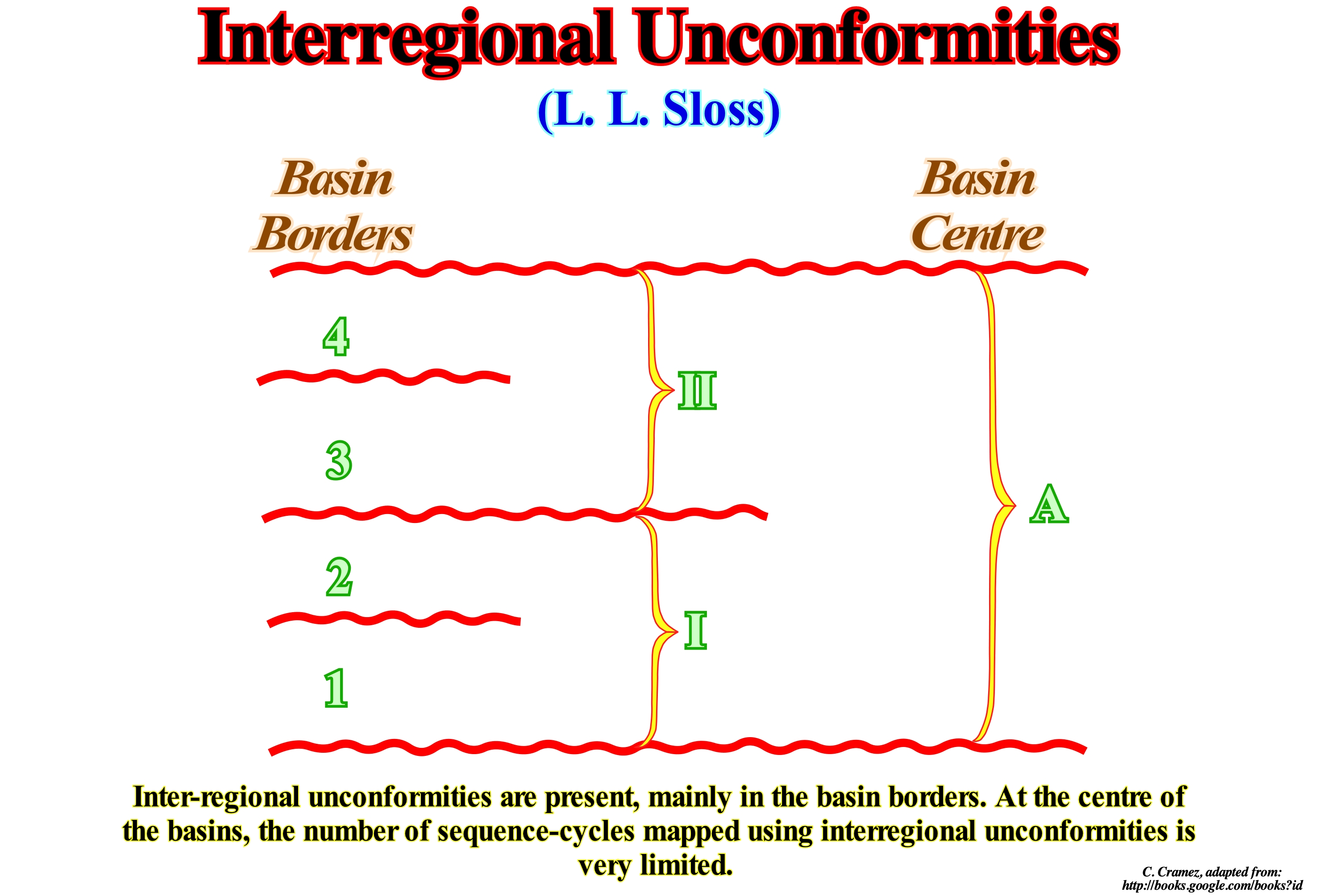 (*) Local sea level, referenced to any fixed point on the Earth's surface, whether it is the base of the sediments or the floor, which is the result of the combined action of tectonics and the absolute (eustatic) sea level, i.e., of the global sea level, referenced to the Earth's centre. The absolute sea level is the result of the combination of: (i) Tectono-Eustasy, that is controlled by the volume variation of the ocean basins in association with oceanic expansion following the break-up of the supercontinents ; (ii) Glacio-Eustasy, which is controlled by the variation of water volume of the oceans as a function of the amount of ice (assuming that the amount of water in all its forms is constant since the formation of the Earth, there are about 4.5 Ga) ; (iii) Geoidal-Eustasy, which is controlled by the distribution of ocean water caused by variations in the Earth's gravity field (where gravity is stronger than normal, sea level is thrown to the Earth's centre) and (iv) Steric sea level rise or thermal expansion of the oceans (if the temperature increases, the density of the water decreases, and for a constant mass, the volume increases).