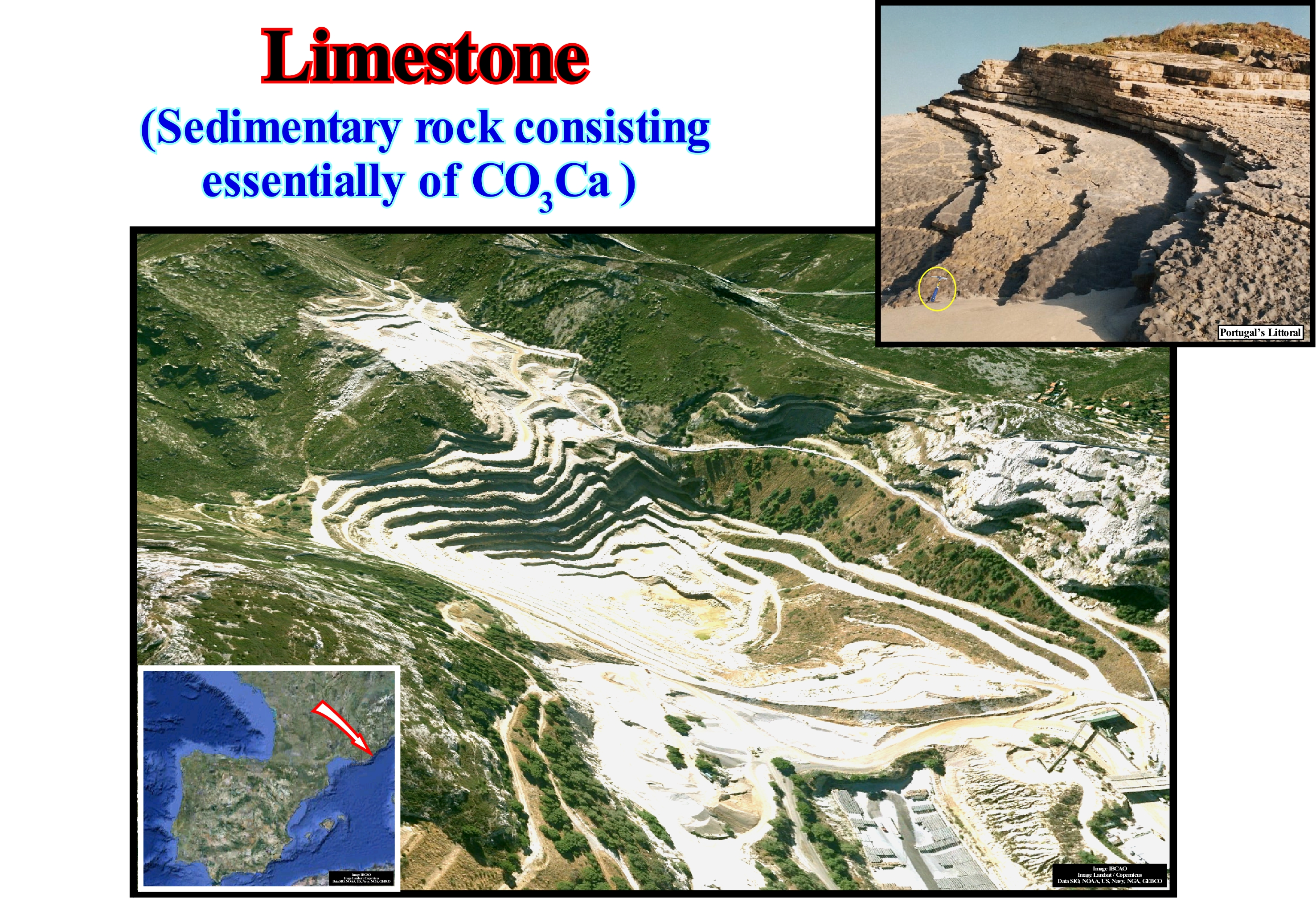 A sediment whether it is deuterogene (of secondary origin, i.e., clastic or detrital) or proterogene (primary origin, i.e., formed by precipitation) is not a sedimentary rock (endogenous by exogenous contrast) before the grains clump together each other. The material that adheres the grains to one another and which is called cement, is most often a proterogene sediment (mineral that forms when water passes through the free spaces between the sediments). If water (sea-water or underground) contains the necessary chemical elements, crystals form between the grains that adhere to each other. Calcite, quartz, and sometimes hematite form, often, the cement of sedimentary rocks. The photographs, illustrated in this figure, underline the difference between a pile of sedimentary particles (left photograph), and a sedimentary rock made up of the same particles (right photograph). The passage from one to the other is the lithification. A pile of sedimentary particles (clasts), as in the photograph on the left, becomes more rapidly a sedimentary rock, the more buried it is, as geostatic pressure compresses the grains against each other. The process of transformation, that is, lithification can last hundreds of thousands of years. Certain proterogene sedimentary particles are lithified by recrystallization of the minerals that constitute them, rather than by cementation. The typical example is the formation of many limestones and shales, which require a recrystallization of the sedimentary grains at the site. In this process, the minerals recrystallize in response to a change in the chemical environment (an increase in pH), because certain minerals are more stable than others under certain conditions. When the mineral grains recrystallize (whole grains or only the edges of the old ones), they grow together and create new boundaries between the grains, turning the sedimentary particles into a compact rock.
