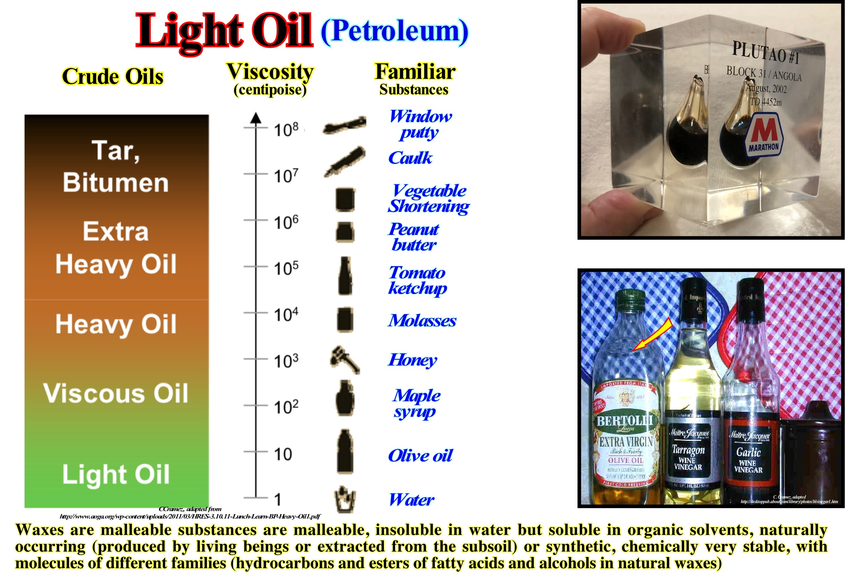Condensates or liquid natural gases are gaseous hydrocarbons, which are, often, found in certain reservoir-rocks and which condense to form liquid hydrocarbons at atmospheric conditions. In general, condensates have a low density and a high grade API (America Petroleum Institute). If the API degree is greater than 10, the condensate floats on the water. As shown in this pressure/temperature diagram, the presence of a condensate, as a liquid phase, depends on the rock-reservoir, temperature and pressure conditions, which allow the condensation of a liquid to vapour. The production of condensates can be complicated by the pressure sensitivity for certain condensates (reaction of minerals with the fluid, which is a function of the structure of the reservoir and the distribution of minerals). Thus, during production, there is always a risk that the condensate will change from gas to liquid if the reservoir pressure drops below the saturation point ("dew point pressure" is the pressure at which the first liquid condensate turns into gas). If the production of gas is preferable to the production of liquids, the pressure of the reservoir can be maintained by injecting fluids. The gas produced in association with a condensate is called wet gas**. The API degree of a typical condensate ranges from 50° to 120°. As illustrated in the above sketch, all this means, that function of temperature and pressure, a single unitary system can behave as a gas, liquid, solid or as a mixture of the three. A condensate is, primarily, composed of propane, butane, pentane and heavier hydrocarbon fractions. A condensate does not form just in a reservoir-rock, it can be formed in an oil pipeline and in surface installations.