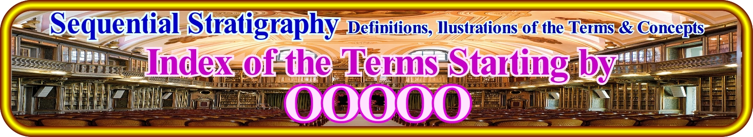 As shown in this figure, besides the sequential and genetic stratigraphy as well as sedimentary transgressions/regressions (T/R stratigraphy), we can also consider isotopic stratigraphy, which allows to determine the relative ages of sediments based on the relative proportions of the isotopes of an element particular. The basic principle is that the proportions of some isotopes embedded in biogenic minerals such as calcite, aragonite, phosphate and others change with time in response to paleoenvironmental and geological changes. However, the relative proportions of the isotopes are, often, masked by the diagenetic alteration of sediments. Differentiation between primary and secondary isotopic proportions is a difficult and very controversial subject. Although the isotopes of many elements have been studied, isotopes of oxygen, strontium and carbon, are the most, commonly, used. The isotopic oxygen stratigraphy is, of course, based on the oxygen isotope curve in which the relative proportions of the 18O and 16O isotopes are projected. Remember that an isotope is one of two or more varieties of a chemical element whose atoms have the same number of protons and electrons (even atomic number), but which have a different number of neutrons in the nucleus (different atomic weight). Oxygen may exist in various forms, but only 16O and 18O are important in the analysis of the oxygen isotopes. Oxygen-16 or 16O is a stable isotope of oxygen, which has 8 neutrons and 8 protons at its core. It is the most abundant isotope of oxygen (99% of the natural abundance of oxygen), since it is not only the main product of stellar evolution but also a primordial isotope, since it was made by nucleosynthesis in stars that were originally made exclusively of hydrogen. The rate of abundance of these two isotopes gives various types of information about geological past, such as the origin of water and the most probable temperature of the oceans. As at present the average rate of 18O over 16O is, more or less, 1 to 500, all measures are taken against this value which is taken as a reference. The vast majority of geoscientists consider that the rate between 18O and 16O varied in the oceans, cyclically, as a function of the alternation of the glacial and interglacial periods. The rate between 18O and 16O depends on the water temperature. The 18O isotope increases as the temperature decreases. The oxygen incorporated in the calcium carbonate of the shells of marine organisms reflects the rate between 18O and 16O. As the acidification of the fossil shells releases oxygen, it allows determining the temperature of the oceans in which the fossilized animals have now lived. During the peak of the last glaciation, the deep-water was enriched by 18O from about 1.6 parts per thousand (1.6 ppm), which is equivalent to an absolute (eustatic) sea level fall of about 165 m in relation to the current sea level. Thus, it can be said oxygen isotopes can emphasize changes in ocean temperature and ice volume. The oxygen isotopic stratigraphy made in the Cenozoic sediment and, particularly the Quaternary sediment samples, using microfossils, suggested changes in ocean temperatures and ice caps thickness, which allowed the recognition of isotopic stages of oxygen. The separate effects of these parameters (temperature and ice volume) are distinguished by comparing the isotope ratios in planktonic and benthic microfossils, mainly foraminifera. On the other hand, as they were induced by the Milankovitch cycles, it is possible to identify and correlate the isotope stages of oxygen globally. Curves 18O provide a time scale (20 ka resolution) from the Quaternary to the Neogene. In pre-Cenozoic sediments, the use of oxygen isotopes is more limited because much of the carbonate is recrystallized and rarely reflects changes in isotopic proportions of oxygen. In this figure, the isotopic oxygen (18O/16O) stratigraphy in depth (composite metric depth), determined from the shells of the benthic foraminifera Uvigerina to the site 1014, is illustrated. The oxygen isotope data (horizontal lines) are numbered at (sub-stages of the marine isotopes) and correlated with the reference section (depth) of deep sea oxygen isotopes. The maximum glaciers are well marked and underline the cyclicity of the variations of the absolute sea level.