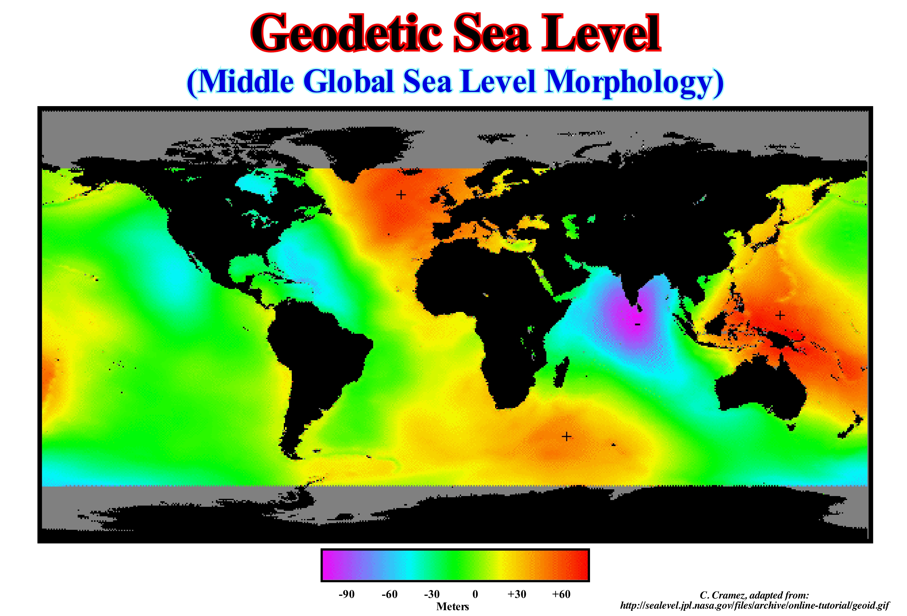 Ocean Geoid (Geodetic sea level).........................................................................................................................................Géoïde océanique