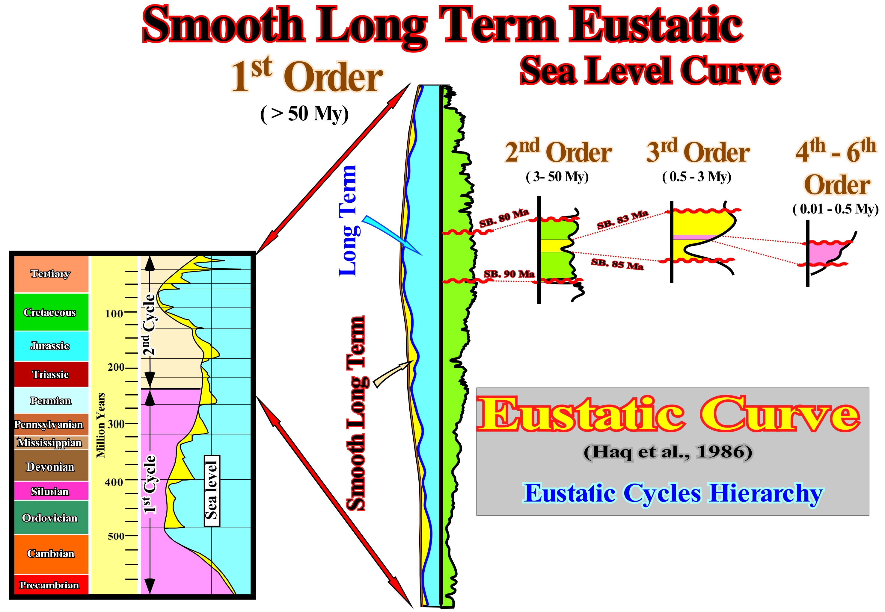 (*) An eustatic paracycle should mean an increase in absolute (eustatic) sea level rise rather than relative sea level rise. A set of eustatic paracycles forms a 3rd order eustatic cycle, which designates a relative sea level cycle rather than absolute or eustatic sea level. Correctly, the term eustatic should be applied to any event associated with absolute (eustatic) sea level and not with the relative sea level.