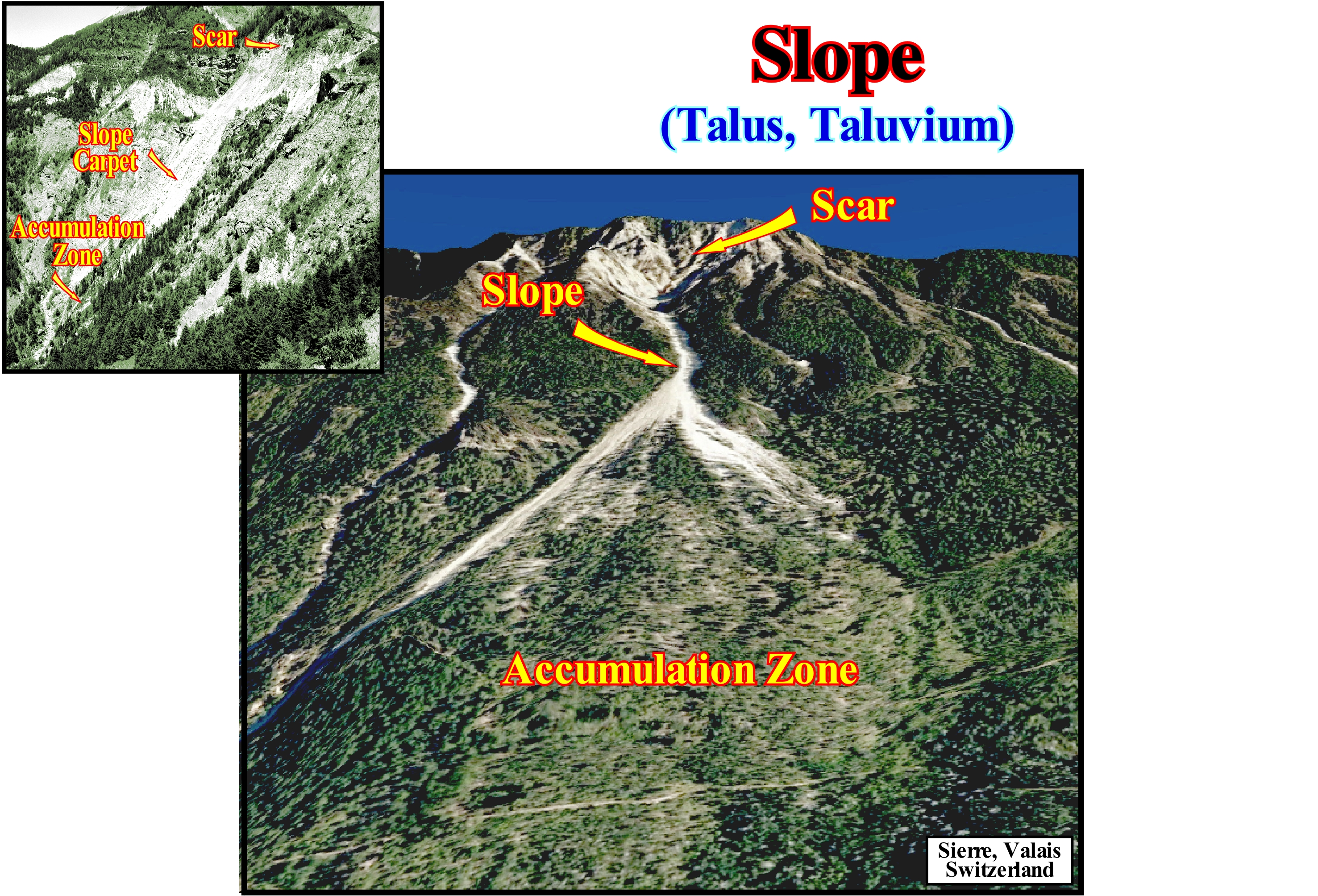 Slope (Talus, taluvium).............................................................................................................................................................................................Talus (Taluvion)
