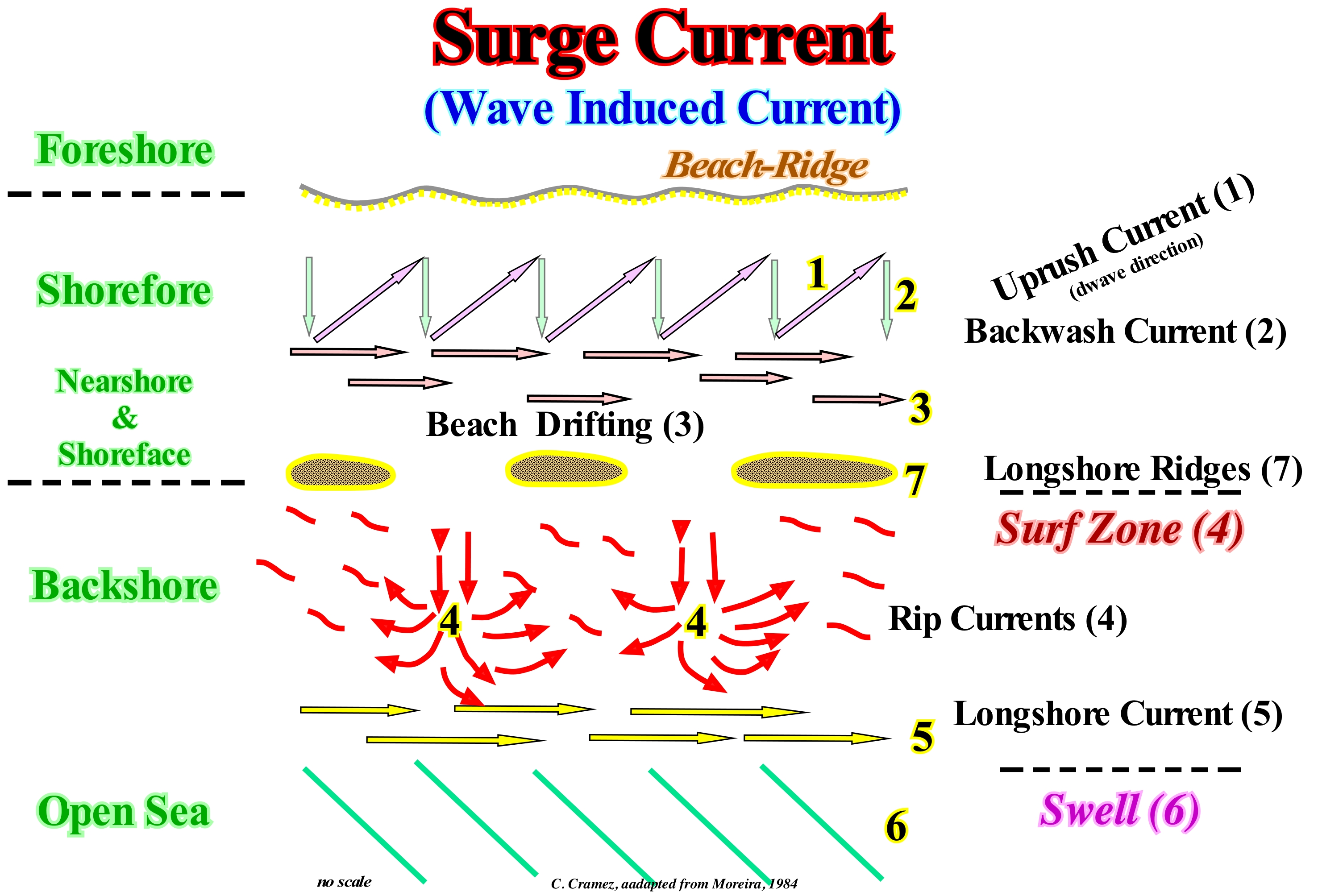 Correntes da ressaca / Corrientes de resaca / Swash Ströme / 斜电流 / Прибойные течения / Swash correnti, Correnti delle zona di battigia /