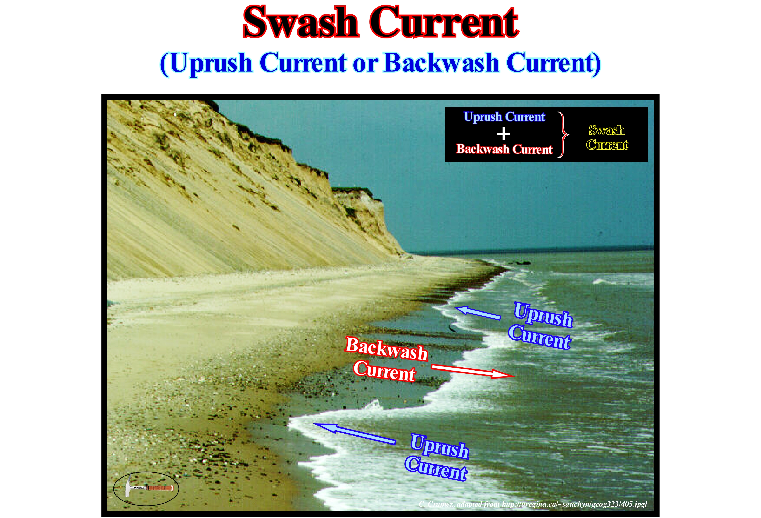 Current or currents that formed after the breaking of the waves. There are two swash currents : (i) Uprush Current and (ii) Backwash Current.