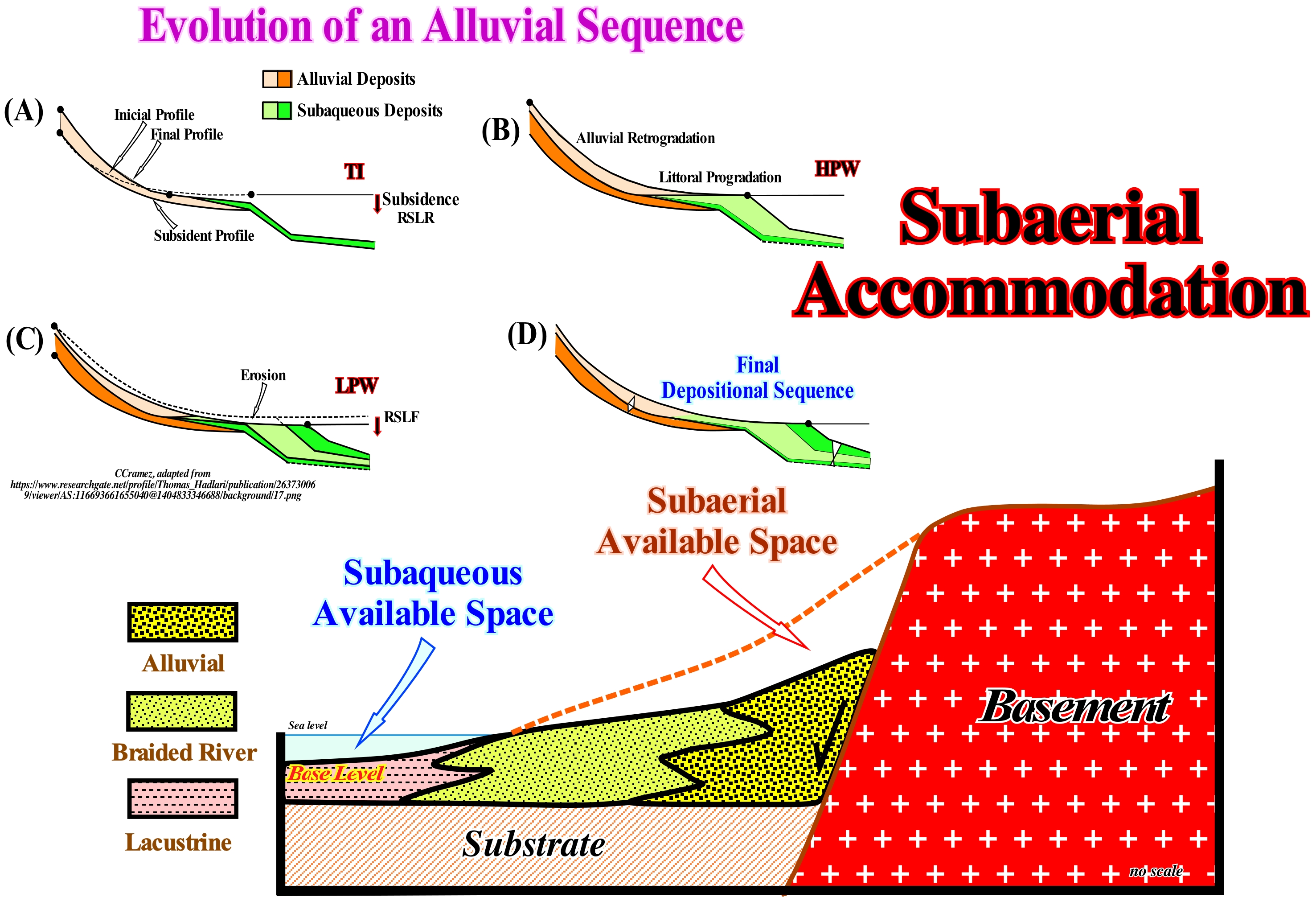 (*) Do not confuse base level with the relative sea level, since the base level may be subaerial.