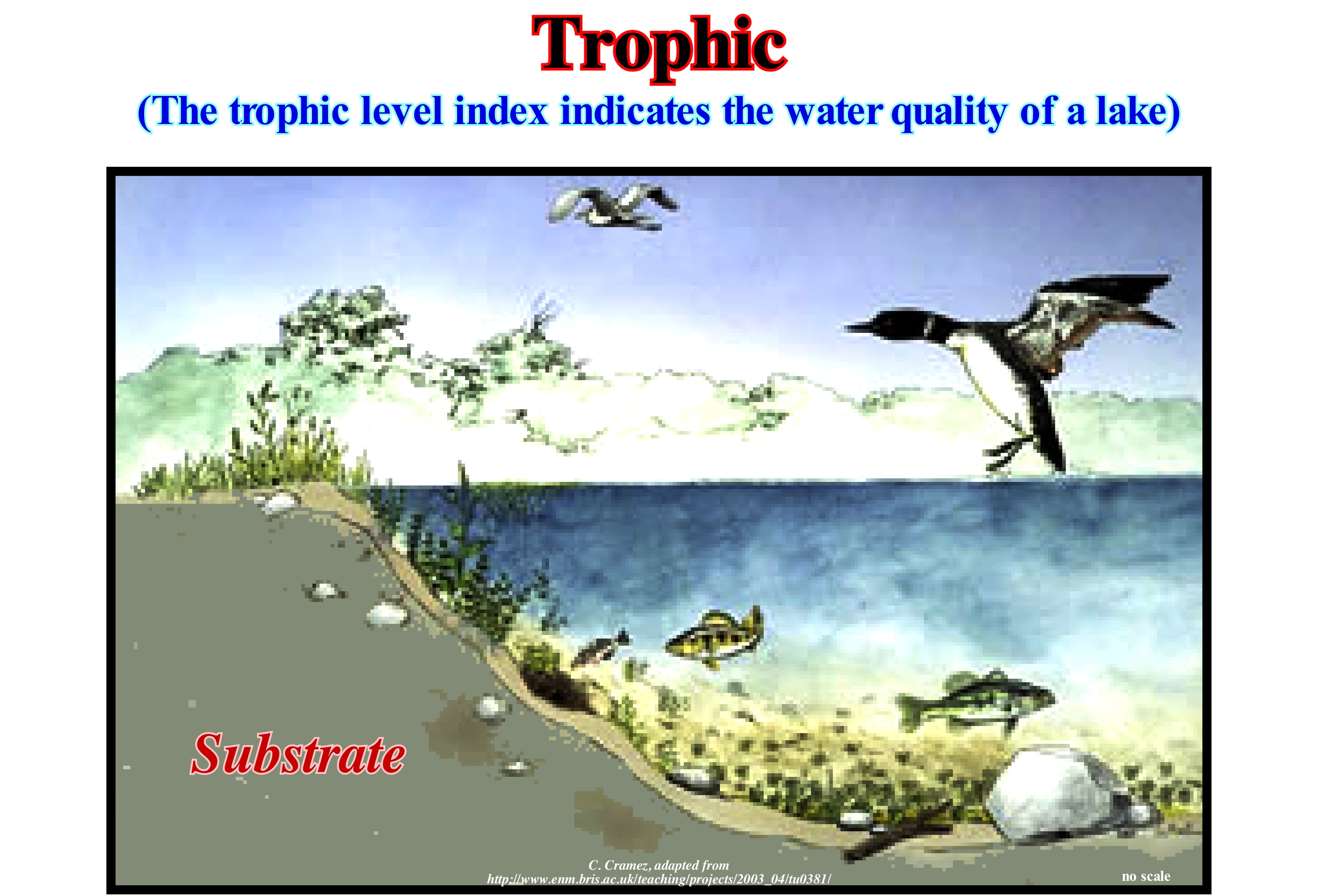 Amount of nutrients in a lake. The Trophic Level Index (TLI) is an indicator of lake water quality. Four parameters are combined to determine TLI: (i) Total Nitrogen ; (ii) Total phosphorus ; (iii) Water clarity and (iv) Amount of Chlorophyll a. These four parameters reflect the dynamics of the annual lake cycle.