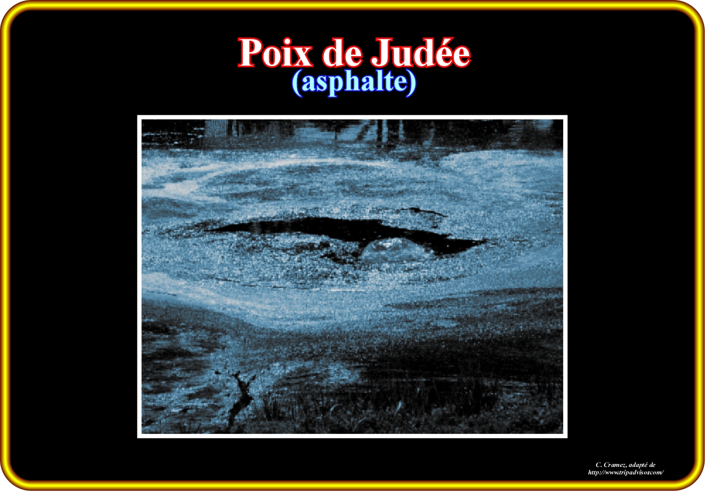 Le terme poix de Judée (asphalte) est, certainement, une traduction du mot anglais "Pitch" qui est le nom que les Britanniques donnent une série de liquides visqueux qui semblent solides. Ainsi, pour eux le "pitch" peut être fait à partir de produits pétroliers ou de plantes. Les premiers, comme illustré sur cette figure, sont surtout connus comme le bitume et secondes comme résines. En français, les termes goudron, poix minérale, breu, pitch et l'asphalte sont, pratiquement, synonymes. Dans certains dictionnaires, le terme pitch correspond à la substance noire et très visqueuse dérivée de charbon (pitcher une table, c'est-à-dire l'application de goudron ou de poix minérale sur la surface d'une table), mais selon ces même dictionnaires, il est synonyme de : (i) Goudron qui est une substance visqueuse, foncée, d'odeur pénétrante, plus ou moins, liquide obtenue par distillation de la matière organique tel que du charbon, bois, huile, etc. ; (ii) Breu (colophane ?) qui est une substance solide très très foncée, qui est obtenu par distillation du goudron de houille, huiles ou résines et (iii) Bitume qui est une substance minérale de consistance variable, riche en carbone et hydrogène, qui se trouve dans la nature et qui brûle avec une flamme épaisse et est provient de la décomposition des matières organiques. Cependant, les géoscientistes anglo-saxons englobent tous ces termes dans un seul «Tar». Cependant, ce terme en anglais correspond à une résine noire et visqueuse qui est produite à partir du bois et des racines du sapin par distillation destructive sur pyrolyse. Des produits similaires au "tar" peuvent être produits à partir d'autres formes de matière organique, comme de la tourbe ou à partir de produits minéraux comme les hydrocarbures y compris de l'huile fossile. Ainsi, le terme «tar» semble être mal utilisé quand il se réfère à l'asphalte de La Brea, prés de Los Angeles, (puits naturels de "tar") ou à des mélanges de sable et bitume ou l'huile lourde (" Tar Sands" de la ceinture de l'Orénoque) ou de l'huile de la Birmanie («Tar» de Rangoon). En anglais "tar" et "pitch" sont utilisés de façon interchangeable, bien que le "pitch" soit considéré comme plus solide et «tar» est plus liquide.