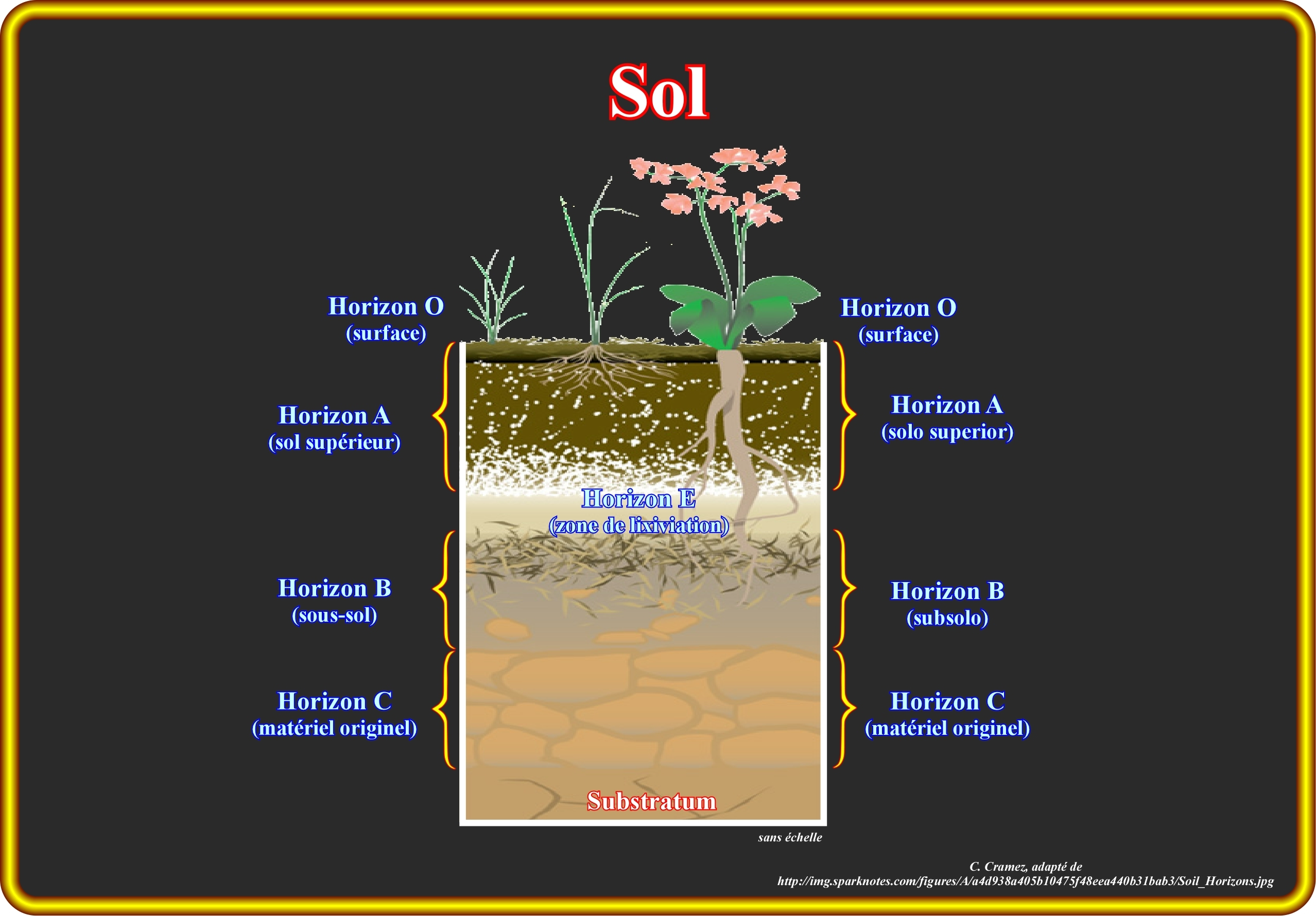 Ensemble des horizons géologiques sus-jacents au substratum rocheux qui ont une épaisseur variable et qui sont composés composants minéraux qui diffèrent des matériaux originaux par leurs caractéristiques morphologiques, physiques et minéralogiques.