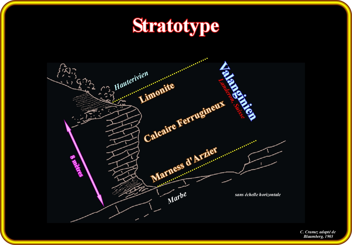 Le stratotype peut être définit comme une unité dans sont ensemble (unité stratotype), soit comme une limite entre deux unités (stratotype de la limite). Le Valanginien (deuxième étage du Crétacé Initial) est caractérisé par une série d'événements, qui suggèrent des variations environnementales et climatiques. Ces événements ne sont pas ni catastrophiques ni instantanés, comme l'événement - Maastrichtien, mais au contraire reflètent des changements graduels de la balance biosphérique globale. Les trois régions typiques du Valanginien sont le Jura (Suisse), Provence (France) et Friuli (Italie, près de Trieste). Toutes ces régions, qui sont situées dans la marge nord (Suisse et Provence) et sud (Friuli) de l'ouest de la Mer de Thétys. En Suisse (Landeron), le Valanginien a environ 8 mètres et est constitué par trois intervalles : (i) Marnes d'Araire ; (ii) Calcaire ferrugineux et (iii) Limonite. À cette époque, autrement dit, il y a, plus au moins, 135 millions d'années, le supercontinent Pangée était, encore, à se fracturer et, ainsi, le volcanisme était très actif. Le climat était chaud et humide en presque toutes les régions. Le différence de température entre les pôles et l'équateur était, relativement, petite dû à efficacité du transport de la chaleur latitudinal. Cependant, la présence de glendonite (forme de calcite qui se forme à basse température et qui suggère la présence de glaciers) dans le Valanginien Tardif indique un refroidissement global. La période entre le Valanginien et Hauterivien est caractérisée par une augmentation de isotope du carbone (δ13-C) d'environ de 1.5%, lequel a été trouvé dans les sédiments pélagiques des océans. Des sédiments riches en fer et même des gisements de fer sont fréquents dans les dépôts du Valanginien, ainsi comme des gisements de magnésium et phosphore. Le niveau de la mer a monté (transgression de deuxième ordre), bien que moins que dans le Crétacé Moyen. Le Valanginien représente le premier événement anoxique du Crétacé, lequel a produit moins de roches-mères que l'événement Aptien-Albien. La noyage des plate-formes carbonatées a été accompagné d'une grande rupture sédimentaire et d'une grande crise de biota des mers peu profondes.